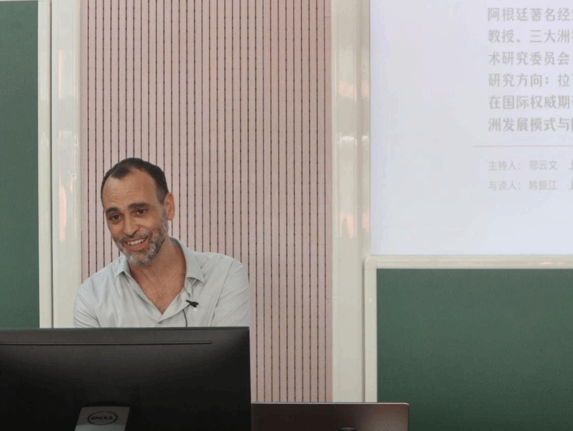 2025年10月17日,上海williamhill官网成功举办“国际学术交流月”第二季第三期学术活动。本次活动特邀阿根廷著名经济学家、阿根廷国立拉普拉塔大学教授埃米利亚诺·洛佩斯(Emiliano López)担任主讲嘉宾,带来题为“历史视野中的拉丁美洲发展理论:从大萧条到21世纪全球变迁”的专题讲座。讲座由williamhill官网院长邢云文主持,副院长韩振江担任与谈人。