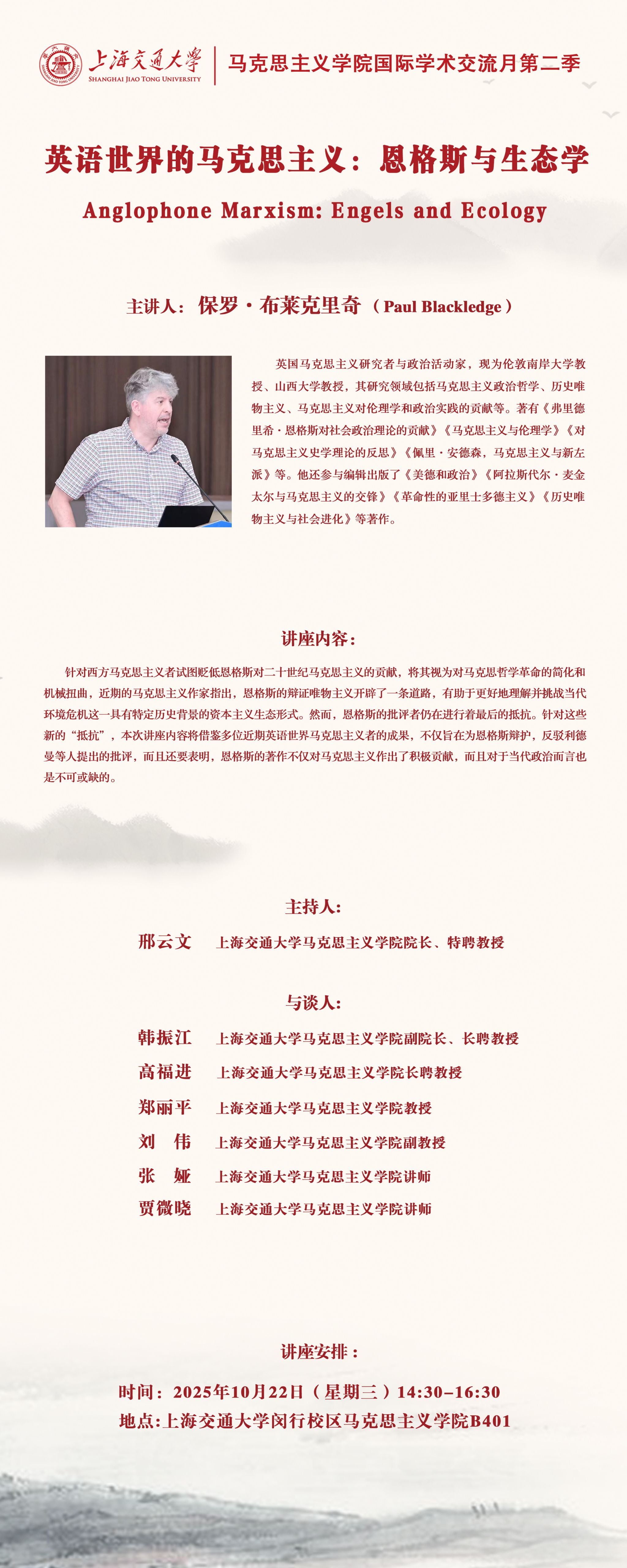 国际学术交流月|英语世界的马克思主义:恩格斯与生态学